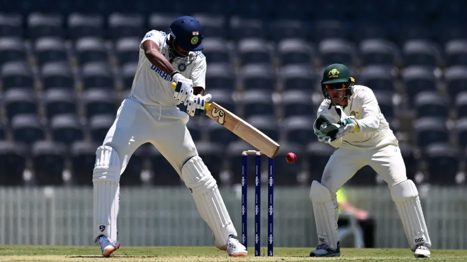 भारतीय ए टीम के लिए ऑस्ट्रेलिया के दौरे की शुरुआत बिल्कुल भी उम्मीद के अनुसार देखने को नहीं मिली है, जिसमें मैकेय में शुरू हुए ऑस्ट्रेलिया ए टीम के खिलाफ पहले अनऑफीशियल टेस्ट मैच में टीम इंडिया की पहली पारी सिर्फ 107 रनों के स्कोर पर ही सिमट गई। इस मैच में भारतीय ए टीम की तरफ से सिर्फ तीन खिलाड़ी ऐसे रहे जो दहाई का आंकड़ा पार करने में कामयाब हो सके तो वहीं तीन खिलाड़ी तो अपना खाता भी खोलने में कामयाब नहीं हो सके। ऑस्ट्रेलिया ए टीम की तरफ से गेंदबाजी में ब्रेंडन डॉजेट ने सबसे ज्यादा 6 विकेट हासिल किए। इस मैच में टीम इंडिया की प्लेइंग 11 में नितीश कुमार रेड्डी और अभिमन्यू ईश्वरन भी हिस्सा हैं जिसमें दोनों ही बल्लेबाज पहली पारी में कोई कमाल दिखाने में कामयाब नहीं हो सके।