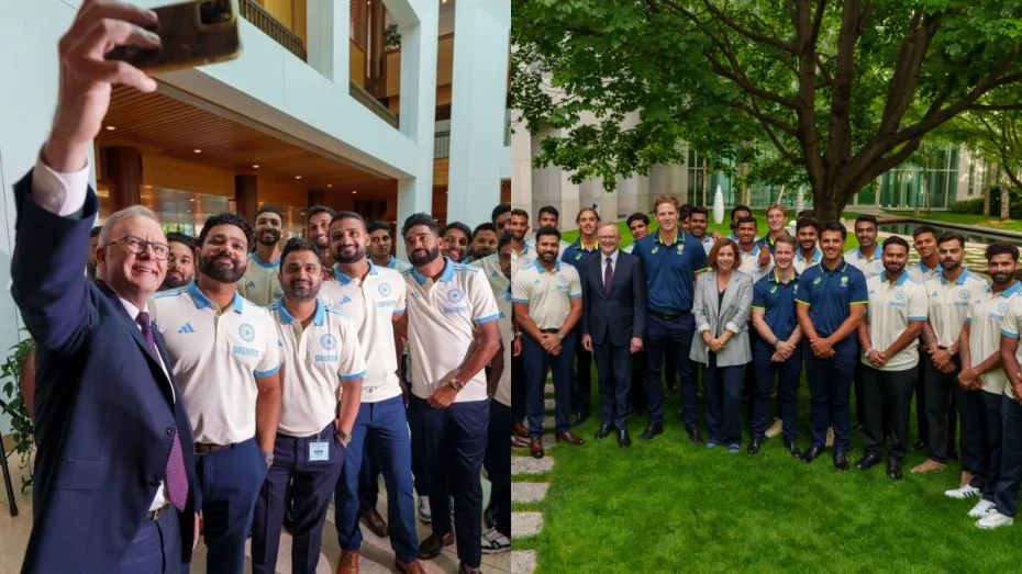 Indian Team meet Australian PM: भारतीय टीम इस समय ऑस्ट्रेलिया के दौरे पर 5 मैचों की बॉर्डर-गावस्कर ट्रॉफी खेलने पहुंची है। इस सीरीज का आगाज टीम इंडिया ने कप्तान रोहित शर्मा की गैरमौजूदगी के बावजूद काफी शानदार तरीके से करते हुए पर्थ के ऑप्टस स्टेडियम में खेले गए सीरीज के पहले मुकाबले को 295 रनों से अपने नाम किया। इस मुकाबले में कप्तानी की जिम्मेदारी टीम इंडिया के लिए तेज गेंदबाज जसप्रीत बुमराह संभाल रहे थे जिनका जीत दिलाने में सबसे अधिक योगदान रहा। अब टीम इंडिया को इस सीरीज का अगला मुकाबला 6 दिसंबर से एडिलेड के मैदान पर खेलना है जो पिंक बॉल से खेला जाएगा। इस मुकाबले से पहले टीम इंडिया को एक 2 दिवसीय प्रैक्टिस मैच 30 नवंबर से कैनबरा के मैदान पर ऑस्ट्रेलियाई प्राइम मिनिस्टर इलेवन के खिलाफ खेलना है जो पिंक बॉल से ही खेला जाएगा। इस मैच से पहले ऑस्ट्रेलियाई पीएम एंथोनी अल्बानीज ने टीम इंडिया के सभी प्लेयर्स के साथ मुलाकात की जिसमें कप्तान रोहित शर्मा भी मौजूद थे।