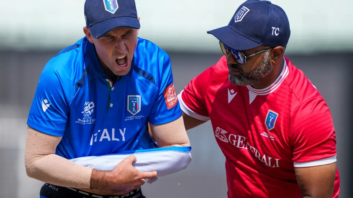 दरअसल, इटली के कप्तान वेन मैडसन गंभीर रूप से चोटिल हो गए और इसके चलते वह स्कॉटलैंड के खिलाफ इस मुकाबले में आगे हिस्सा नहीं ले पाएंगे। इटली ने स्कॉटलैंड के खिलाफ टॉस जीतकर पहले गेंदबाजी करने का फैसला किया था। इस मुकाबले के दौरान फील्डिंग करते समय वेन मैडसन एक शानदार डाइव लगाकर गेंद रोकने की कोशिश कर रहे थे, लेकिन इसी दौरान वह जोर से अपने बाएं कंधे के बल गिर पड़े। गिरते ही मैडसन दर्द से कराहते नजर आए और तुरंत मैदान पर फिजियो को बुलाना पड़ा।