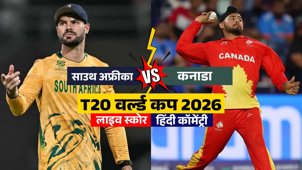 LIVE Cricket Score, SA vs CAN: साउथ अफ्रीका की टीम टी20 विश्व कप 2026 में अपना पहला मैच खेल रही है। पहले मुकाबले में उसका सामना कनाडा से हो रहा है। ये मैच अहमदाबाद के नरेंद्र मोदी स्टेडियम में है। मैच में कनाडा के कप्तान दिलप्रीत बाजवा ने टॉस जीतकर पहले गेंदबाजी का फैसला किया है। साउथ अफ्रीका की टीम पहले बल्लेबाजी कर रही है, जो भी लक्ष्य दिया जाएगा, उसका पीछा कनाडा की टीम करेगी। । आप यहां नीचे इस मैच का लाइव स्कोर और बॉल टू बॉल हिन्दी कमेंट्री देख और पढ़ सकते हैं।