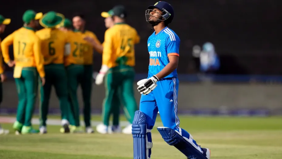 साउथ अफ्रीका के खिलाफ तीन मैचों की टी20 सीरीज के तीसरे मुकाबले को भारतीय टीम ने 106 रनों से अपने नाम करने के साथ सीरीज को 1-1 से बराबरी पर खत्म करने में कामयाबी हासिल की। इस मैच में टीम इंडिया की तरफ से बल्लेबाजी में जहां कप्तान सूर्यकुमार यादव और यशस्वी जायसवाल का कमाल देखने को मिला तो वहीं गेंदबाजी में कुलदीप यादव ने 5 विकेट हासिल करने के साथ टीम की जीत में महत्वपूर्ण योगदान भी दिया। हालांकि इस मैच में टीम इंडिया का हिस्सा बाएं हाथ के युवा बल्लेबाज तिलक वर्मा के लिए बल्ले से कुछ खास नहीं रहा जिसमें वह गोल्डन डक पर आउट होकर पवेलियन लौट गए। इसी के साथ तिलक के नाम अब ऐसा शर्मनाक रिकॉर्ड भी दर्ज हो गया जो इससे पहले किसी भी भारतीय खिलाड़ी के नाम पर नहीं था।