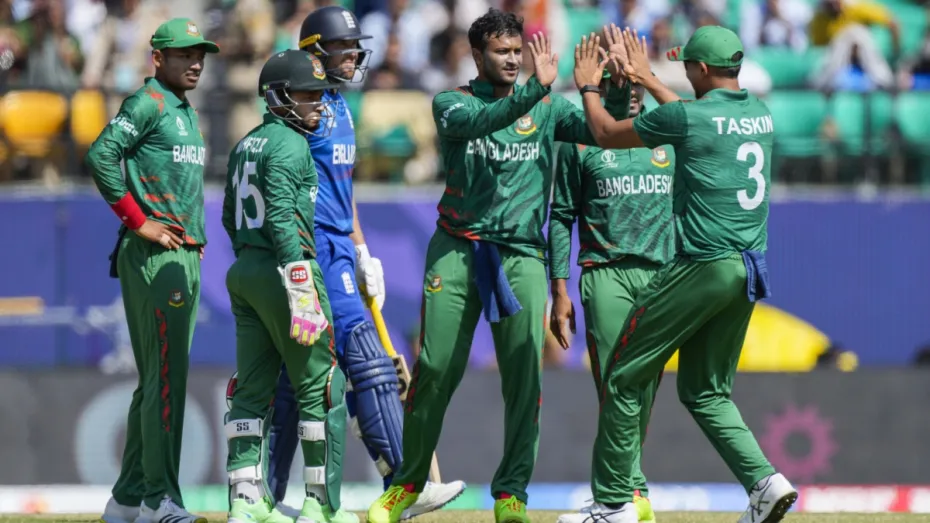आईसीसी वनडे वर्ल्ड कप 2023 में सातवें मुकाबले में इंग्लैंड और बांग्लादेश की बीच धर्मशाला के मैदान पर भिड़ंत देखने को मिली। इस मैच में बांग्लादेश को 137 रनों से बड़ी हार का सामना करना पड़ा। बांग्लादेश को इस मुकाबले के बाद आईसीसी ने भी एक बड़ा झटका देते हुए स्लो ओवर रेट के लिए टीम पर 5 फीसदी मैच फीस का भी जुर्माना लगा दिया। गतविजेता इंग्लैंड की टीम ने इस मुकाबले के साथ अपनी जीत का खाता भी खोल लिया है।