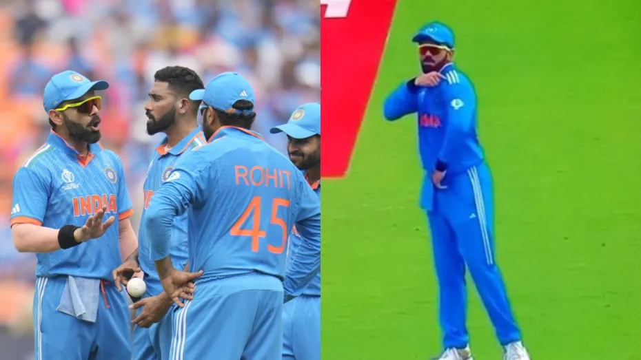 आईसीसी वनडे वर्ल्ड कप 2023 में अहमदाबाद के नरेंद्र मोदी स्टेडियम में भारत और पाकिस्तान के बीच मुकाबला खेला जा रहा है। इस मैच में भारतीय टीम ने टॉस जीतकर पहले गेंदबाजी करने का फैसला किया है। टीम इंडिया ने इस मैच के लिए अपनी प्लेइंग 11 में एक बदलाव किया है, जिसमें इशान किशन की जगह पर शुभमन गिल की वापसी देखने को मिली है। भारतीय टीम के स्टार खिलाड़ी विराट कोहली से मैच की शुरुआत में एक ऐसी गलती हो गई कि उन्हें उसे सुधारने के लिए तुरंत वापस ड्रेसिंग रूम के अंदर जाना पड़ा।