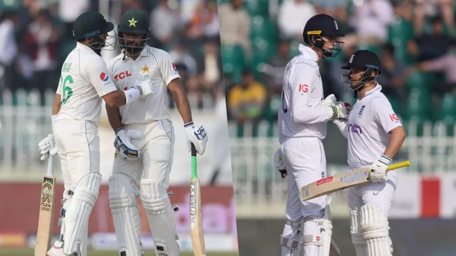PAK vs ENG: पाकिस्तान और इंग्लैंड के बीच जारी पहले टेस्ट मैच में नए-नए रिकॉर्ड्स का बनना जारी है। रावलपिंडी में खेले जा रहे टेस्ट मैच में तीन दिन के बाद कुल 7 शतक लग चुके हैं। इंग्लैंड की तरफ से जहां पहली पारी में चार शतक लगे थे तो वहीं मेजबान टीम के खाते में भी बल्लेबाज भी 3 शतक आए हैं। इस बीच एक अनोखा रिकॉर्ड भी देखने को मिला।