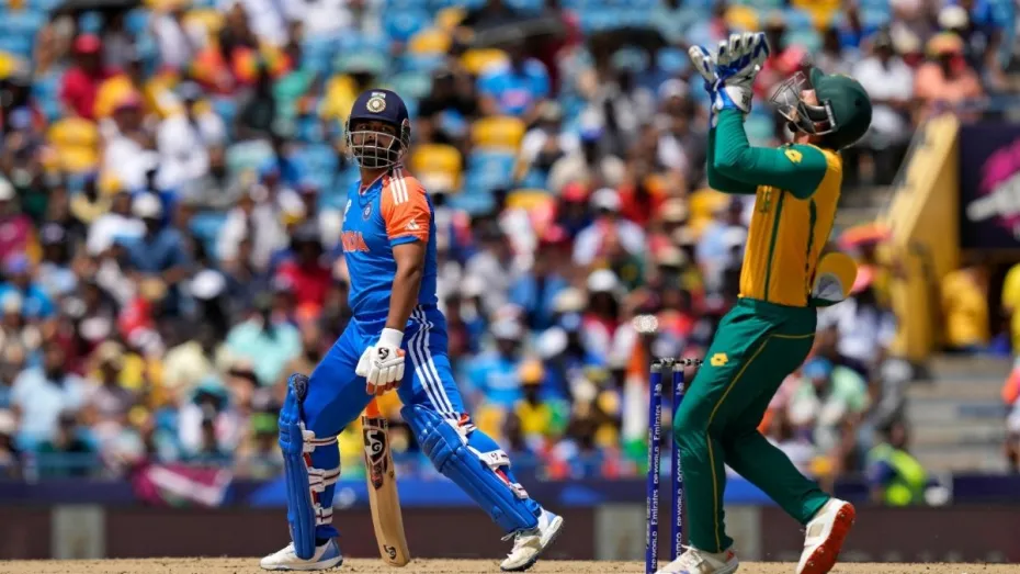 ऋषभ पंत को केशव महाराज की बॉल पर क्विंटन डिकॉक ने कैच आउट कर वापस भेजा। भारत ने इससे पहले दो बार टी20 वर्ल्ड कप का फाइनल खेला है। पहले साल 2007 में भारत का मुकाबला पाकिस्तान से हुआ था, इसके बाद साल 2014 में भारतीय टीम फिर से फाइनल में पहुंची थी। तब भारत का मुकाबला श्रीलंका से हुआ था। इन दोनों मैचों में भारत का कोई भी बल्लेबाज शून्य पर आउट नहीं हुआ था। यानी ऋषभ पंत भारत के ऐसे पहले बल्लेबाज बन गए हैं, जो टी20 विश्वकप के फाइनल में डक पर आउट हुए हैं।