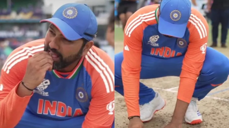 बारबाडोस का केनिंग्सटन ओवल मैदान 29 जून 2024 से हर भारतीय के दिल में अपनी एक अलग जगह बना चुका है। इस स्टेडियम में साउथ अफ्रीका के खिलाफ हुए टी20 वर्ल्ड कप 2024 के फाइनल मुकाबले को टीम इंडिया ने रोहित शर्मा की कप्तानी में 7 रनों से अपने नाम करने के साथ 11 साल से चले आ रहे आईसीसी ट्रॉफी को जीतने के सूखे को भी खत्म कर दिया। इस जीत के बाद रोहित शर्मा ने जहां टी20 इंटरनेशनल से अपने संन्यास का भी ऐलान कर दिया तो वहीं वह काफी भावुक भी दिखाई दिए जिसमें उनकी आंखों से जीत की खुशी में आंसू साफतौर पर देखने को मिले। वहीं अब रोहित का एक वीडियो भी सामने आया है जिसमें उन्हें बारबाडोस की पिच को भी नमन किया।