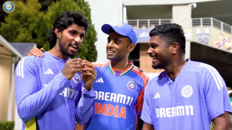 संजू सैमसन और तिलक वर्मा से बात करते हुए सूर्या ने सबसे पहले संजू से साउथ अफ्रीका दौरे के बारे में पुछा। इस पर संजू ने काफी अच्छे अंदाज में जवाब दिया कि यह दौरा उनके लिए कभी ना भूलने वाला रहा है। तिलक वर्मा से सूर्या ने उनके बालों के बारे में बात की और बताया कि वह साउथ फिल्मों के स्टार अल्लू अर्जुन की तरह लग रहे हैं। ऐसे में सूर्या ने उनसे पूछा कि क्या वह पुष्पा 3 फिल्म में काम करना चाह रहे हैं। इस पर तिलक ने कहा कि वह सिर्फ क्रिकेट खेलना चाह रहे हैं।