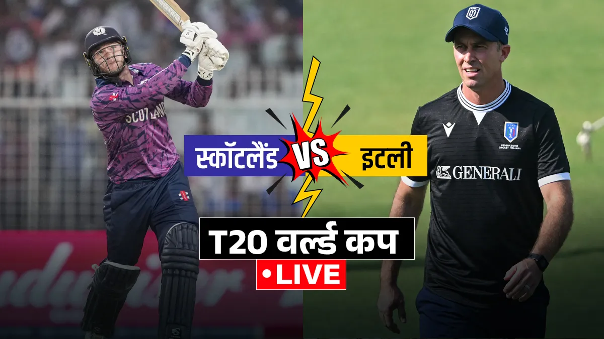 Scotland Vs Italy LIVE Score, T20 World Cup 2026: ICC T20 वर्ल्ड कप 2026 में 9 फरवरी को पहले मुकाबले में स्कॉटलैंड और इटली के बीच टक्कर हो रही है। यह मुकाबला टूर्नामेंट का सातवां मैच है, जो कोलकाता के ऐतिहासिक ईडन गार्डन्स में खेला जा रहा है। इटली की टीम ने टॉस जीतकर पहले गेंदबाजी करने का फैसला किया। स्कॉटलैंड की पारी का शानदार आगाज हुआ है। सलामी बल्लेबाज जॉर्ज मुन्से और माइकल जोन्स ने 13 ओवर में 115 रन स्कोरबोर्ड पर लगा दिए। जॉर्ज मुन्से अर्धशतक बनाकर आउट हो गए। मुन्से ने 84 रनों की पारी खेली। इटली को 14वें ओवर में जाकर पहली सफलता मिली। इसके बाद माइकल जोन्स 37 रन बनाकर आउट हो गए।