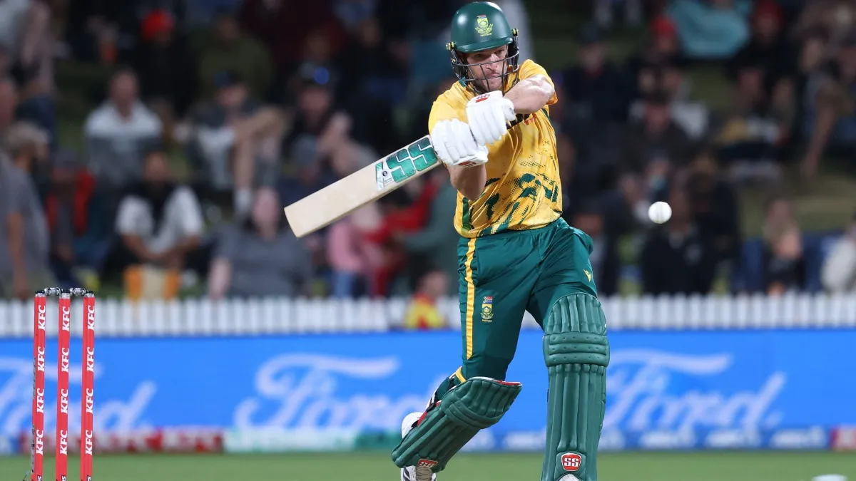साउथ अफ्रीका की टीम इस समय न्यूजीलैंड के दौरे पर है जहां वह 5 मैचों की टी20 सीरीज मेजबान टीम के खिलाफ खेलने के लिए पहुंची है। इस सीरीज का पहला मुकाबला अफ्रीकी टीम ने एकतरफा तरीके से अपने नाम किया था। इसके बाद दोनों टीमों के बीच में सीरीज का दूसरा मुकाबला हैमिल्टन के मैदान पर 17 मार्च को खेला गया जिसे कीवी टीम 68 रनों से अपने नाम करने में कामयाब रही। साउथ अफ्रीका टीम को भले ही दूसरे टी20 मैच में हार का सामना करना पड़ा लेकिन उनके ओपनिंग बल्लेबाज वियान मुल्डर के एक शॉट का वीडियो सोशल मीडिया पर जमकर वायरल हो रहा है। इस शॉट में उन्होंने ऐसा छक्का लगाया जिसमें गेंद सीधे स्टेडियम पार कर सड़क पर जाकर गिरी।