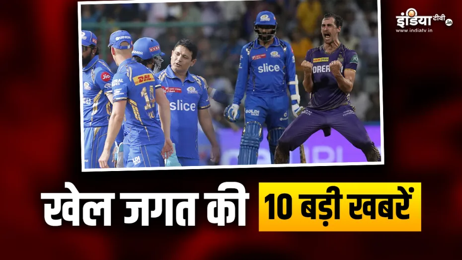 Sports Top 10 News: आईपीएल 2024 का 51वां मैच मुंबई इंडियंस और कोलकाता नाइट राइडर्स की टीमों के बीच मुंबई के घर वानखेड़े क्रिकेट स्टेडियम में खेला गया। इस मैच में कोलकाता नाइट राइडर्स ने मुंबई इंडियंस को 24 रनों से हरा दिया। वहीं, पीयूष चावला आईपीएल में सबसे ज्यादा विकेट लेने वाले दूसरे गेंदबाज बन गए हैं। ऐसे में आइए खेल जगत की 10 ऐसी ही बड़ी खबरों पर एक साथ नजर डालते हैं।