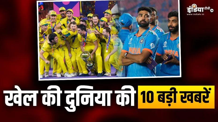 अहमदाबाद के नरेंद्र मोदी स्टेडियम में खेले गए वनडे वर्ल्ड कप 2023 के फाइनल मुकाबले में ऑस्ट्रेलिया ने भारत को 6 विकेट से मात देने के साथ उनके ट्रॉफी जीतने के सपने को तोड़ दिया। खिताबी मैच में ऑस्ट्रेलिया की तरफ से गेंदबाजी और बल्लेबाजी दोनों में शानदार प्रदर्शन देखने को मिला जिसकी वजह से वह छठी बार इस खिताब को जीतने में कामयाब हुए हैं। वहीं टूर्नामेंट में टीम इंडिया की तरफ से भी शानदार प्रदर्शन देखने को मिला जिसमें विराट कोहली को प्लेयर ऑफ द टूर्नामेंट का खिताब दिया गया। आइए जानते हैं खेल जगत की 10 बड़ी खबरें।