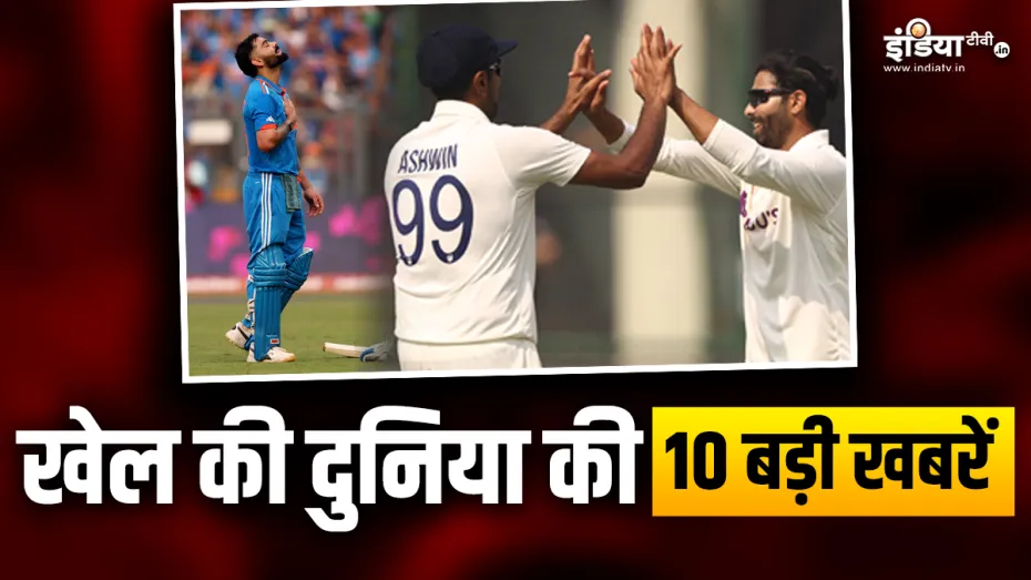 Sports Top 10: हैदराबाद के राजीव गांधी इंटरनेशनल क्रिकेट स्टेडियम में भारत और इंग्लैंड के बीच 5 मैचों की टेस्ट सीरीज का पहला मुकाबला खेला जा रहा है। इस मैच के पहले दिन के खेल में इंग्लैंड की टीम अपनी पहली पारी में सिर्फ 246 रनों का स्कोर बनाकर सिमट गई। वहीं भारतीय टीम ने दिन का खेल खत्म होने से पहले 1 विकेट के नुकसान पर 119 रन बना लिए थे। पहले दिन के खेल में कई नए रिकॉर्ड भी बने जिसमें रविचंद्रन अश्विन और रवींद्र जडेजा अब भारत के लिए टेस्ट क्रिकेट में सबसे ज्यादा विकेट हासिल करने वाली जोड़ी बन गई है। वहीं विराट कोहली को साल 2023 के लिए वनडे प्लेयर ऑफ द ईयर का अवार्ड दिया गया है।