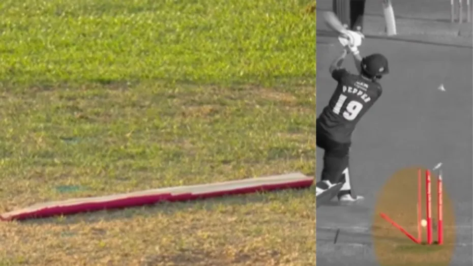 मेरेडिथ ने पीपर को पहले बोल्ड किया उसके बाद जो नजारा दिखा उसे देख सब दंग रह गए। बोल्ड होने के बाद जो हुआ वह शायद इससे पहले किसी भी क्रिकेट मैच में देखने को नहीं मिला होगा। सोशल मीडिया पर वायरल हो रहे वीडियो में गेंद लगने के बाद वो बीच से लंबे दो हिस्सों में बंटती हुई नजर आ रही है। इससे पहले भी कई गेंदबाजों ने बॉलिंग के दौरान विकेट तोड़ा है लेकिन ये नजारा उन सबसे बिल्कुल अलग है।