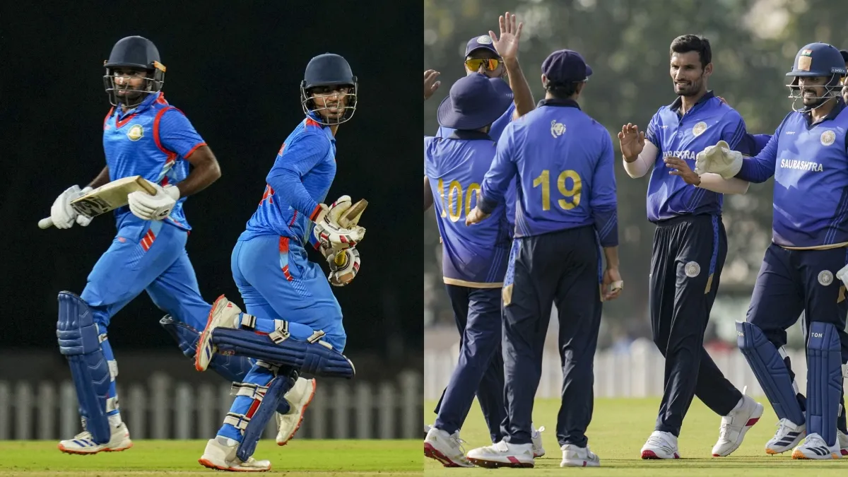 VID vs SAU Final VHT 2025-26 Live Score: भारतीय घरेलू क्रिकेट के सबसे बड़े लिस्ट-ए टूर्नामेंट विजय हजारे ट्रॉफी के जारी सीजन का फाइनल मुकाबला विदर्भ और सौराष्ट्र की टीम के बीच में खेला जा रहा है। दोनों टीमों के बीच ये मैच बेंगलुरु स्थित बीसीसीआई के सेंटर ऑफ एक्सिलेंस ग्राउंड-1 पर हो रहा है, जिसमें सौराष्ट्र टीम के कप्तान ने टॉस जीतने के बाद पहले गेंदबाजी करने का फैसला लिया है। विदर्भ की टीम का फाइनल तक का सफर काफी शानदार देखने को मिला, जिसमें उन्होंने सेमीफाइनल मुकाबले में कर्नाटक की टीम को एकतरफा 6 विकेट से मात दी थी। वहीं दूसरी तरफ सौराष्ट्र की टीम ने भी काफी शानदार खेल दिखाते हुए फाइनल में अपनी जगह को पक्का किया है। सौराष्ट्र ने सेमीफाइनल मैच पंजाब की टीम के खिलाफ खेला था, जिसे वह 9 विकेट से अपने नाम करने में कामयाब रहे थे। ऐसे में विदर्भ और सौराष्ट्र के बीच होने वाले इस फाइनल मुकाबले में दोनों टीमों के बीच कड़ी टक्कर देखने को मिलेगी।