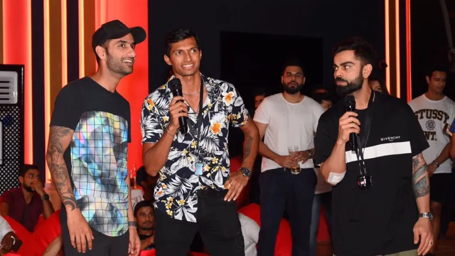 आईपीएल 2020 को शुरू होने में अब महज 4 ही दिन बाकी है। सभी टीमों के खिलाड़ी इस बार खिताब को जीतने के लिए मैदान पर जमकर पसीना बहा रहे हैं। मैदान पर शारीरिक मेहनत करने के साथ-साथ खिलाड़ी अपने दिमाग को तंदरुस्त रखने के लिए मैदान के बाहर भी मस्ती करते हुए दिखाई देते हैं। हाल ही में आरसीबी के तेज गेंदबाज नवदीप सैनी ने अपने सोशल मीडिया पर कुछ तस्वीरें पोस्ट की है जिसमें आरसीबी के खिलाड़ी गाना गाते हुए दिखाई दे रहे हैं। इन तस्वीरों में कप्तान विराट कोहली भी हैं।