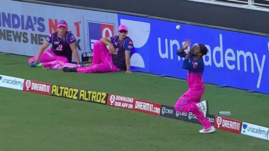 जब कोहली 43 रन पर थे तो उन्होंने 13वां ओवर लेकर आए कार्तिक त्यागी की गेंद पर अपना पसंदीदा फ्लिक शॉट लगाया, लेकिन बाउंड्री पर खड़े तेवतिया ने अपनी सूझ-बूझ से उस कैच को पकड़कर राजस्थान की मैच में वापसी कराई।