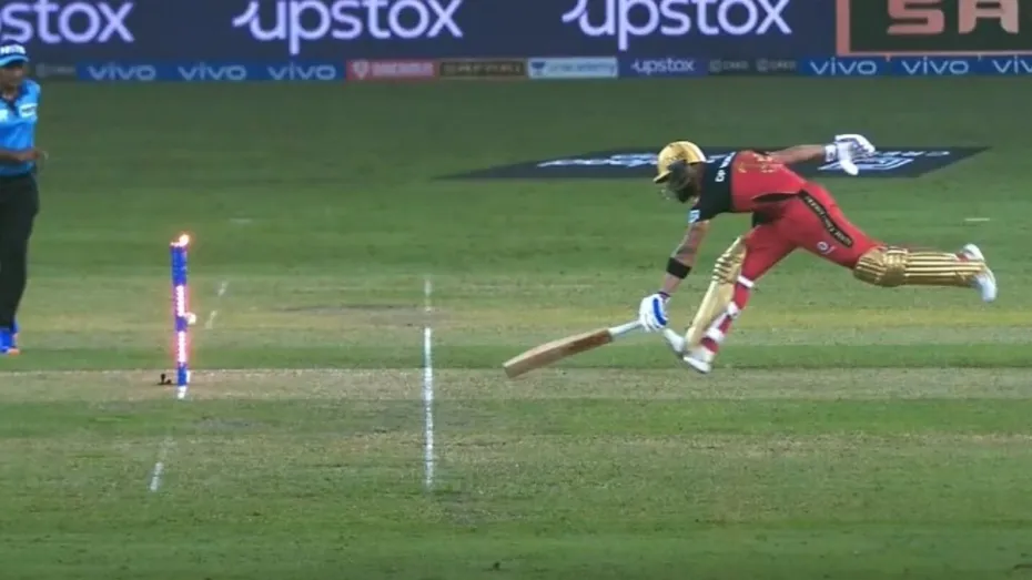 इस लक्ष्य का पीछा करते हुए कप्तान विराट कोहली ने 20 गेंदों का सामना किया और 25 रन बनाए। 25 रन बना कर वे रन आउट हो गए। रियान पराग ने उनको डायरेक्ट हिट कर रन आउट दिया था। कोहली के रन लेने के इस फैसले की काफी आलोचना हो रही है। गौरतलब है कि आखिरी बार कोहली आईपीएल में साल 2016 में रन आउट हुए थे। रियान पराग का डायरेक्ट थ्रो 30 मीटर का था।