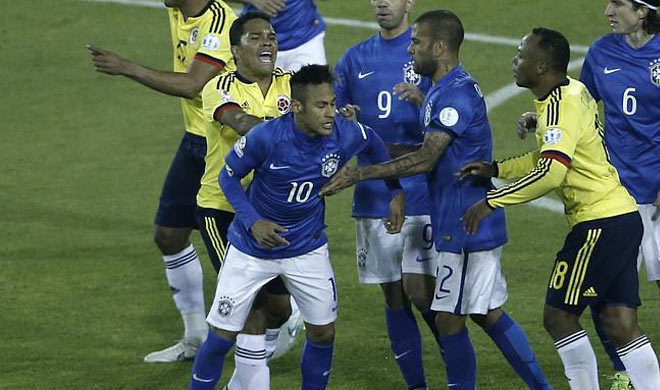 नेमार को हालांकि मैच के दौरान भी गेंद पर हाथ लगाने के कारण एक पीला कार्ड दिखाया जा चुका था। नेमार के साथ-साथ उन्हें धक्का देने वाले कोलंबिया के कार्लोस बाका को भी दो मैचों के लिए प्रतिबंधित किया गया है।
