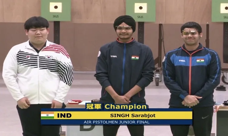 सुहल (जर्मनी)। सरबजोत सिंह ने पुरूषों की 10 मीटर एयर पिस्टल में गुरुवार को यहां 239.6 अंक के साथ स्वर्ण पदक जीतकर आईएसएसएफ जूनियर विश्व कप में भारत का दबदबा बरकरार रखा। सरबजोत के स्वर्ण जीतने का मतलब है कि भारत ने महिला और पुरूष दोनों वर्गों में 10 मीटर एयर पिस्टल का खिताब जीता। इससे पहले 14 वर्षीय ईशा सिंह ने बुधवार को महिला वर्ग में स्वर्ण पदक जीता था।