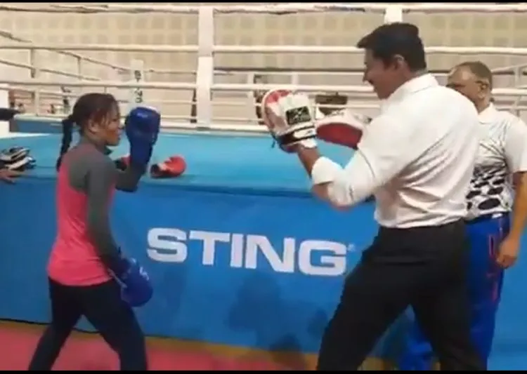 VIDEO: मैरीकॉम को ट्रेनिंग देने पहुंचे खेल मंत्री, कुछ इस अंदाज में हुई मुक्केबाजी