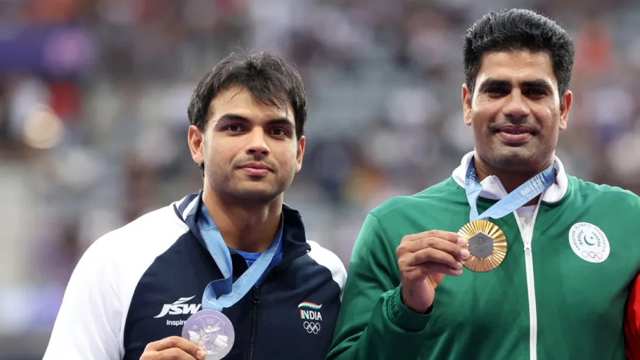 भारत और पाकिस्तान ने जैवलिन थ्रो इवेंट में काफी कमाल का प्रदर्शन किया है। भारत के लिए नीरज चोपड़ा ने इस इवेंट में सिल्वर, वहीं पाकिस्तान के लिए अरशद नदीम ने गोल्ड मेडल अपने नाम किया। दोनों खिलाड़ी मैदान पर प्रतिद्वंदी होने के साथ-साथ काफी अच्छा दोस्त भी हैं। नीरज चोपड़ा ने पिछले ओलंपिक में भारत के लिए गोल्ड मेडल जीता था। इस बार पाकिस्तान ने यह मेडल जीता। नदीम ने पेरिस ओलंपिक के मेंस जैवलिन थ्रो इवेंट में 92.97 मीटर के शानदार थ्रो से ओलंपिक रिकॉर्ड के साथ स्वर्ण पदक जीता जबकि अपने खिताब का बचाव कर रहे चोपड़ा ने 89.45 मीटर का बेस्ट थ्रो मारा।
