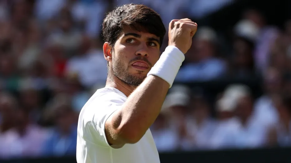 Carlos Alcaraz: विंबलडन ओपन 2025 के सेमीफाइनल में कार्लोस अल्काराज ने कमाल का प्रदर्शन किया है। उन्होंने टेलर फ्रिट्ज को रोमांचक मुकाबले में 6-4, 5-7, 6-3, 7-6 (8-6) से हराकर लगातार तीसरी बार विंबलडन के फाइनल में प्रवेश किया। इससे पहले उन्होंने साल 2023, 2024 में भी विंबलडन के फाइनल में जगह बनाई थी, तब दोनों ही बार उन्होंने खिताब जीता था।