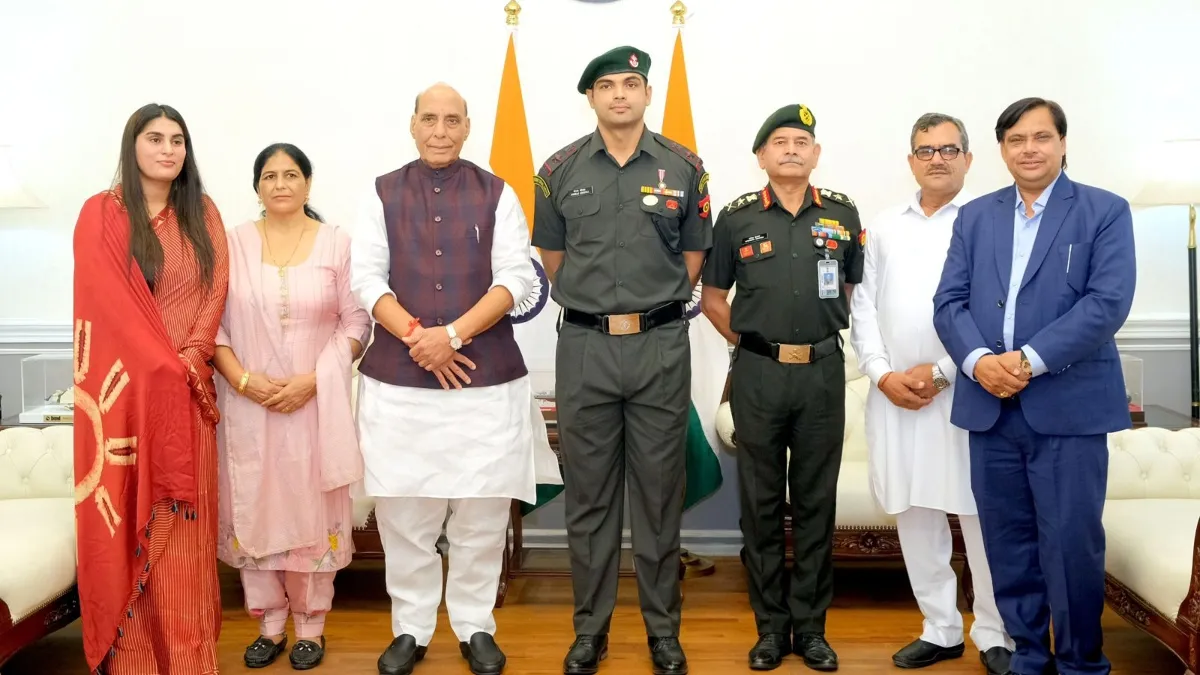 ओलंपिक पदक विजेता भाला फेंक खिलाड़ी नीरज चोपड़ा को रक्षा मंत्री राजनाथ सिंह और थल सेना प्रमुख जनरल उपेंद्र द्विवेदी की उपस्थिति में भारतीय सेना में लेफ्टिनेंट कर्नल की मानद उपाधि प्रदान की गई। रक्षा मंत्री राजनाथ सिंह ने 22 अक्टूबर 2025 को साउथ ब्लॉक में आयोजित पिपिंग समारोह के दौरान स्टार भाला फेंक खिलाड़ी और दो बार के ओलंपिक पदक विजेता नीरज चोपड़ा को प्रादेशिक सेना में लेफ्टिनेंट कर्नल के मानद पद का चमचमाता प्रतीक चिन्ह औपचारिक रूप से प्रदान किया। लेफ्टिनेंट कर्नल (मानद) नीरज चोपड़ा और उनके परिवार के सदस्यों के साथ बातचीत करते हुए रक्षा मंत्री ने उन्हें दृढ़ता, देशभक्ति और उत्कृष्टता के लिए प्रयास करने की भारतीय भावना का प्रतीक बताया।
