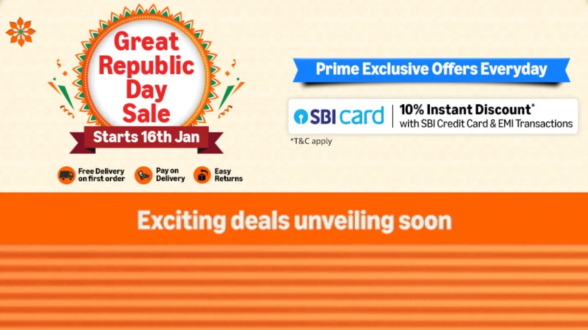 Amazon Great Republic Sale 2026: भारत में गणतंत्र दिवस यानी रिपब्लिक डे की तैयारी जोरोंशोरों से चल रही है और इसके तहत ई-कॉमर्स कंपनियां भी अपनी-अपनी रिपब्लिक डे सेल लेकर बाजार में आ रही हैं। ई-कॉमर्स दिग्गज अमेजन ने ऑफिशियल तौर पर अपनी ग्रेट रिपब्लिक डे सेल 2026 का ऐलान कर दिया है, जो 16 जनवरी से शुरू होने वाली है। यह घोषणा अमेजन की कॉम्पीटीटर फ्लिपकार्ट की तरफ से किए गए ऐलान के बाद आई है, जिसने पहले ही कन्फर्म कर दिया है कि उसकी रिपब्लिक डे सेल 17 जनवरी से शुरू होगी। यदि आप इलेक्ट्रॉनिक्स या घरेलू उपकरण खरीदने का मन बना रहे हैं तो तैयारी शुरू करने का सही टाइम हो सकता है।