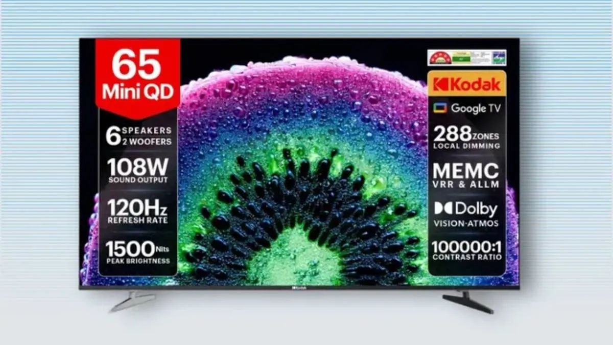 कैमरे और इलेक्ट्रॉनिक्स डिवाइस बनाने वाली कंपनी Kodak ने हाल ही में अपना पहला QD Mini LED TV भारत में लॉन्च किया है। इस स्मार्ट टीवी में 65 इंच की बड़ी स्क्रीन, 108W स्पीकर जैसे तगड़े फीचर्स दिए गए हैं। यह स्मार्ट टीवी नई क्वांटम डॉट टेक्नोलॉजी पर काम करती है, जो बेहतर विजुअल, डीप ब्लैक और नेचुरल कलर के साथ बेहतर परफॉर्मेंस देता है।