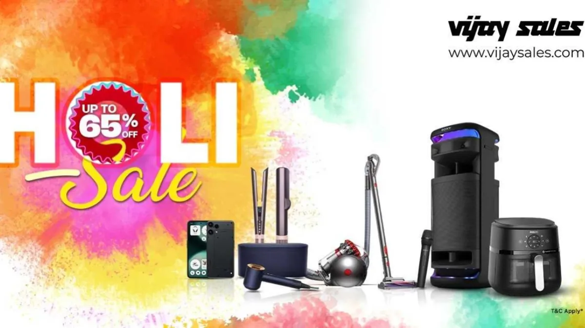 Vijay Sales Holi Sale: होली का त्योहार है और भारत की लीडिंग इलेक्ट्रॉनिक्स ओमनी-चैनल रिटेल चेन विजय सेल्स अपनी मच अवेटेड होली सेल के साथ आपके सेलिब्रेशन को और भी रंगीन बनाने के लिए तैयार है। इस साल रिटेलर ग्राहकों को इलेक्ट्रॉनिक्स और होम अप्लायंसेज की विशाल रेंज पर भारी छूट के साथ "बचत का भरपूर आनंद" लेने का मौका दे रहा है, जिससे आपका घर भी होली के त्योहार की तरह ही जगमगाता और मॉडर्न दिखेगा।