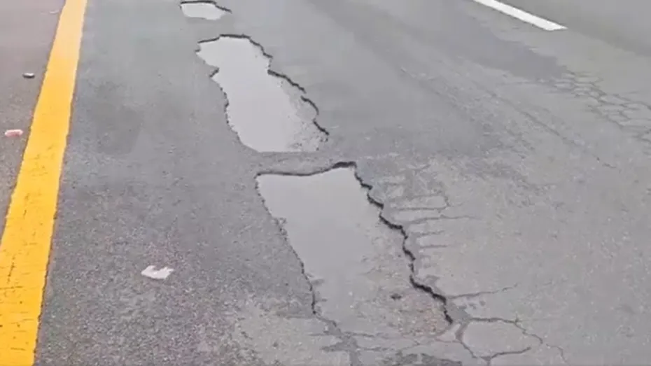 हाइवे पर दिख रहे गड्ढे