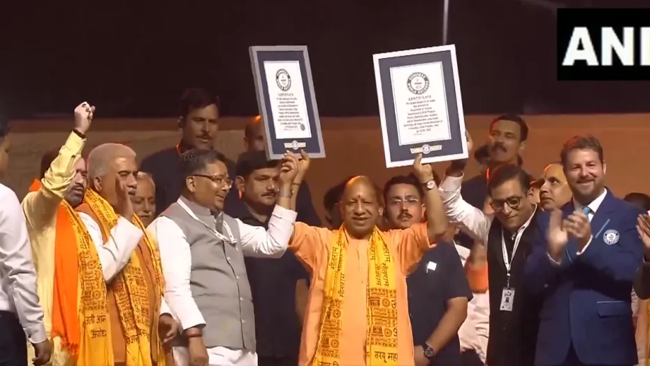 दीपावली के मौके पर रामनगरी अयोध्या में 26,17,215 दीये जलाए गए। इसके साथ ही वर्ल्ड रिकॉर्ड बन गया। मुख्यमंत्री योगी आदित्यनाथ ने अयोध्या में दीपोत्सव समारोह के दौरान बनाए गए दो नए गिनीज वर्ल्ड रिकॉर्ड्स के प्रमाण पत्र लिए। यहां एक साथ सबसे ज्यादा लोगों द्वारा 'दीये' जलाकर गिनीज वर्ल्ड रिकॉर्ड बनाया गया। इसके साथ ही, पर्यटन विभाग, उत्तर प्रदेश सरकार, जिला प्रशासन, अयोध्या ने 26,17,215 तेल के दीयों का सबसे बड़ा प्रदर्शन भी किया। अयोध्या में साल 2017 से दीपोत्सव कार्यक्रम हो रहा है। हर साल यहां दीयों की संख्या बढ़ जाती है। शुरुआत में यहां एक लाख के करीब दीये जलाए गए थे। अब यह संख्या 26 लाख के पार पहुंच चुकी है।
