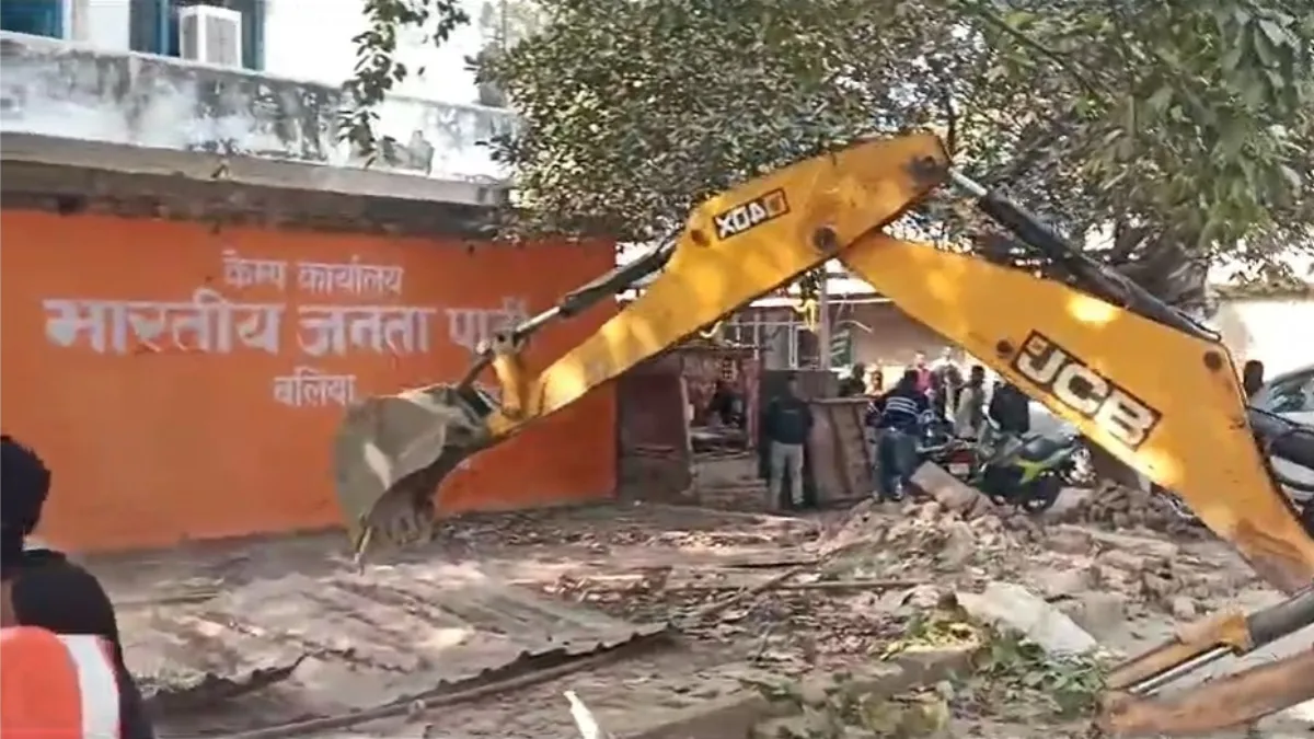 उत्तर प्रदेश में अवैध अतिक्रमण के खिलाफ बीते लंबे समय से योगी आदित्यनाथ सरकार बुलडोजर एक्शन का सहारा ले रही है। यूपी के सीएम योगी आदित्यनाथ को लोग बुलडोजर बाबा भी कह कर बुलाते हैं। कई बार बुलडोजर एक्शन को लेकर विवाद भी हुआ है। हालांकि, यूपी के बलिया से अब हैरान कर देने वाला मामला सामने आया है। यहां बीजेपी के कैम्प कार्यालय पर ही बुलडोजर चला दिया गया है। बीजेपी के जिला उपाध्यक्ष के कैम्प कार्यालय को जिला प्रशासन ने बुलडोजर से जमींदोज कर दिया है।