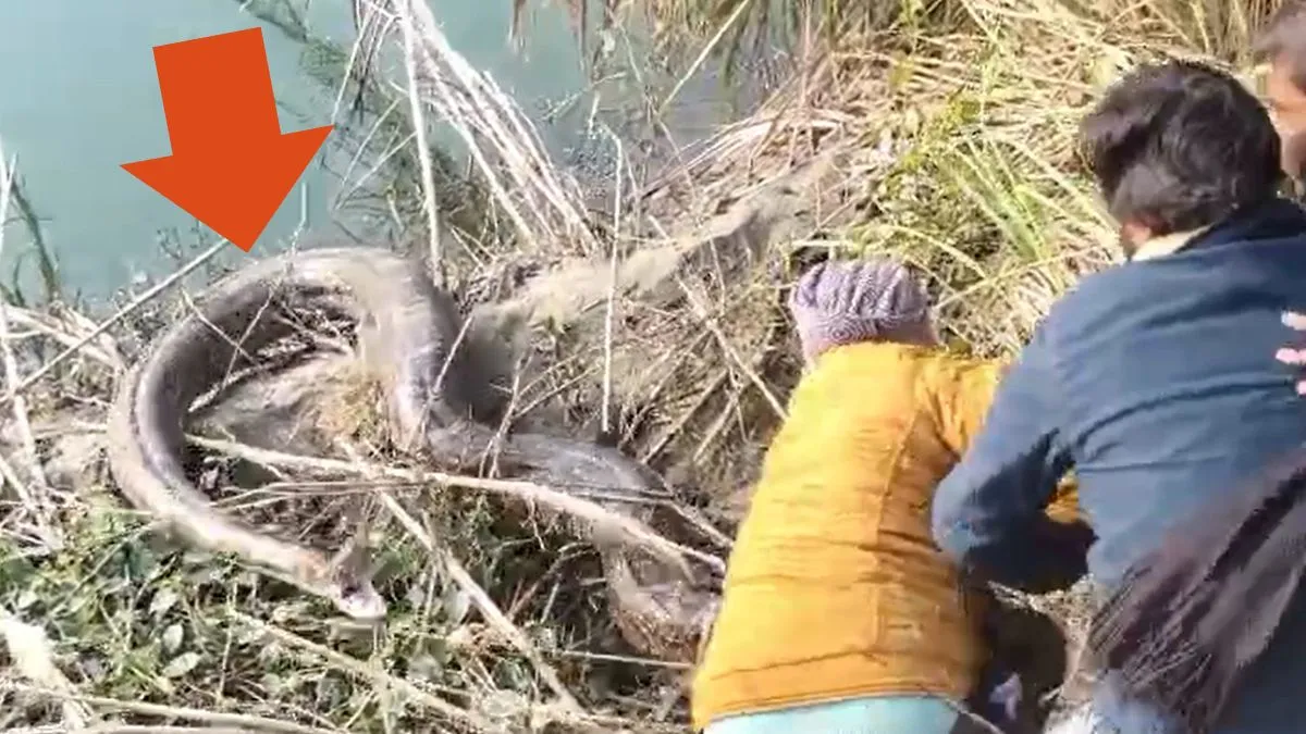 बिजनौर: यूपी के बिजनौर जिले के शेरकोट क्षेत्र में नहर किनारे 2 विशालकाय अजगर देखे जाने से ग्रामीणों में हड़कंप मच गया। इस विशालकाय अजगर को पकड़ने के दौरान वन विभाग की टीम पर अजगर ने हमला भी कर दिया। इस हमले में टीम के लोगों की जान किसी तरह बच गई। उधर, एक ग्रामीण ने वीडियो बनाकर सोशल मीडिया पर वायरल कर दिया। ये सारी घटना ग्रामीण ने अपने मोबाइल कैमरे में कैद की थी। ग्रामीणों की सूचना पर पहुंची वन विभाग की टीम ने रेस्क्यू करके अजगर को पकड़ लिया और छोड़ने के लिए सुरक्षित स्थान पर ले गए।