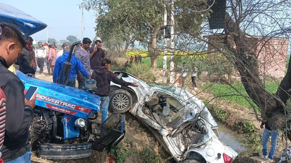 ट्रैक्टर और कार की आमने सामने जोरदार भिड़ंत में दो की मौत। Image Source : REPORTER INPUT