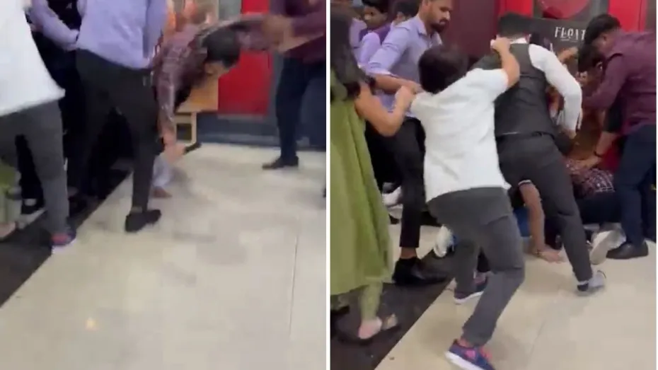नोएडा: नोएडा के सेक्टर-75 स्थित स्पेक्ट्रम मॉल में खाना खाने गए एक परिवार और रेस्टोरेंट कर्मियों के बीच रविवार रात जमकर मारपीट हुई जिसका वीडियो सामने आया है। वीडियो में साफ दिख रहा है कि दोनों पक्षों के लोग एक दूसरे को जमकर पीट रहे हैं। जिसके हाथ जो पड़ा वो उसे एक-दूसरे पर मारने लगा। इस दौरान महिलाओं को भी चोट लगी है। मामले में दोनों पक्षों की ओर से थाना सेक्टर-113 में शिकायत दी गई है।