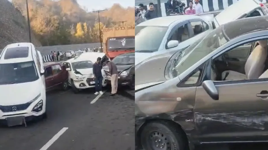 बताया जा रहा है कि तेज रफ्तार और अचानक ब्रेक लगने के कारण एक वाहन अनियंत्रित हो गया। इसके बाद पीछे आ रही कई गाड़ियां एक-दूसरे से टकराती चली गईं। टक्कर इतनी जोरदार थी कि कुछ वाहन एक-दूसरे के ऊपर चढ़ गए और कई गाड़ियों के आगे के हिस्से बुरी तरह क्षतिग्रस्त हो गए।