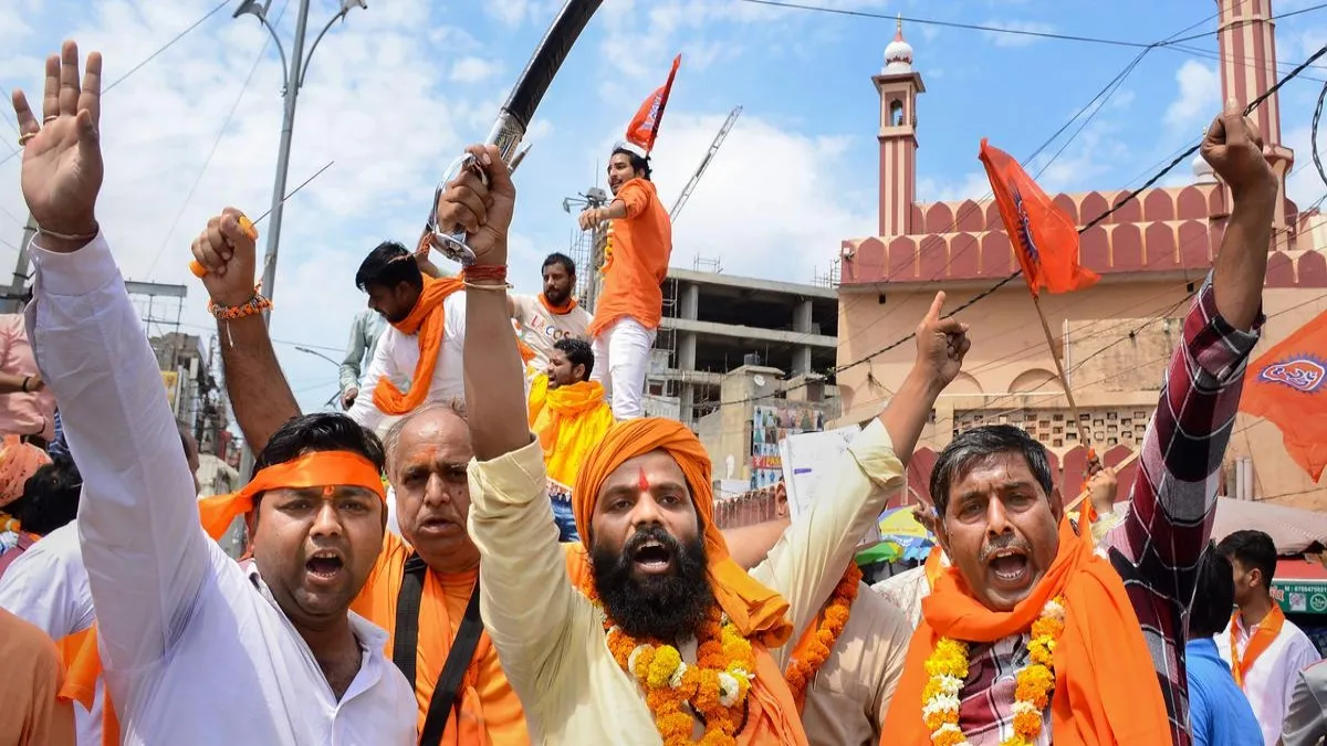 पुलिस की टीम शालीमार गार्डन कॉलोनी में जुलूस निकालने वाले पदाधिकारियों के ठिकानों पर छापेमारी कर रही है। आरोपी हिंदू समर्थक और मुस्लिम विरोधी नारे लगा रहे थे। पदाधिकारियों ने इलाके में घर-घर जाकर लगभग दो दर्जन हथियार बांटे।