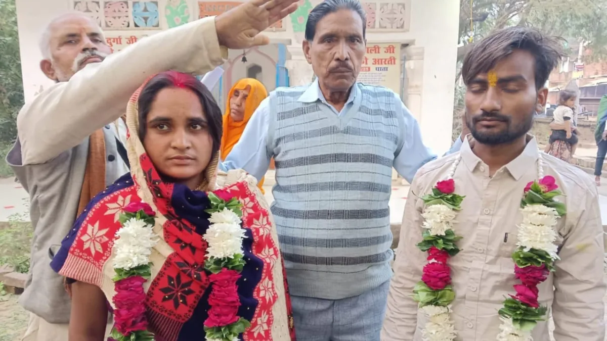 इसके बाद, चौकी के ठीक बगल में स्थित मंदिर में शादी की तैयारियां की गईं। कृष्णा और संजना ने एक-दूसरे को माला पहनाई। कृष्णा ने संजना को मंगलसूत्र पहनाया। मंदिर प्रांगण में डीजे और बैंड-बाजा भी बजा और प्रेमी जोड़े ने परंपरागत विधि-विधान से फेरे लेकर शादी की रस्में पूरी कर लीं।