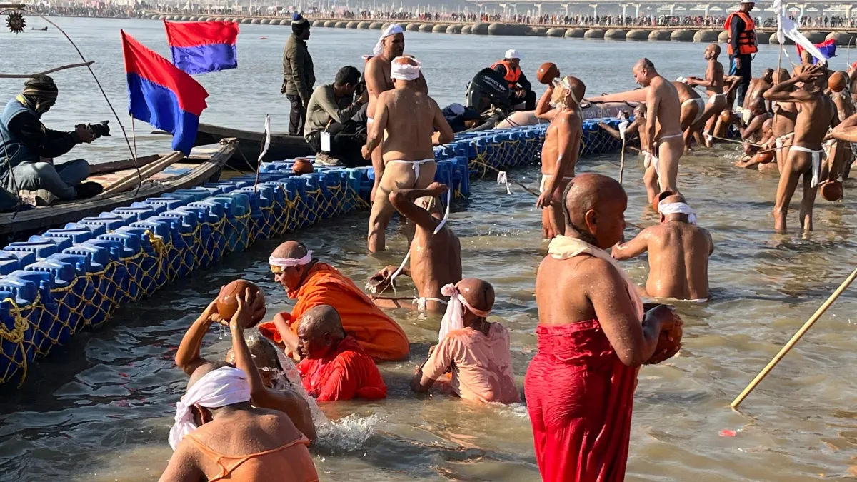 निरंजनी अखाड़े ने सैकड़ों लोगों को नागा बनने की गुरु दीक्षा दी। निरंजनी अखाड़े के महंत और महामंडलेश्वर की देख-रेख में गंगा किनारे विजया संस्कार किया गया। सबसे पहले नागा संन्यासी बनने वाले लोगों को कतार में बैठा कर उनकी शुद्धि कराई गई फिर उनके माथे पर चंदन लगा कर उनको जनेयु धारण करा कर गंगा स्नान कराया गया। इसके बाद सभी से उनके परिवार और उनका खुद का पिण्डादान करा कर उनको गुरु ने सन्यास की दीक्षा दी। अब से ये सभी लोग नागा संन्यासी कहलायेंगे।