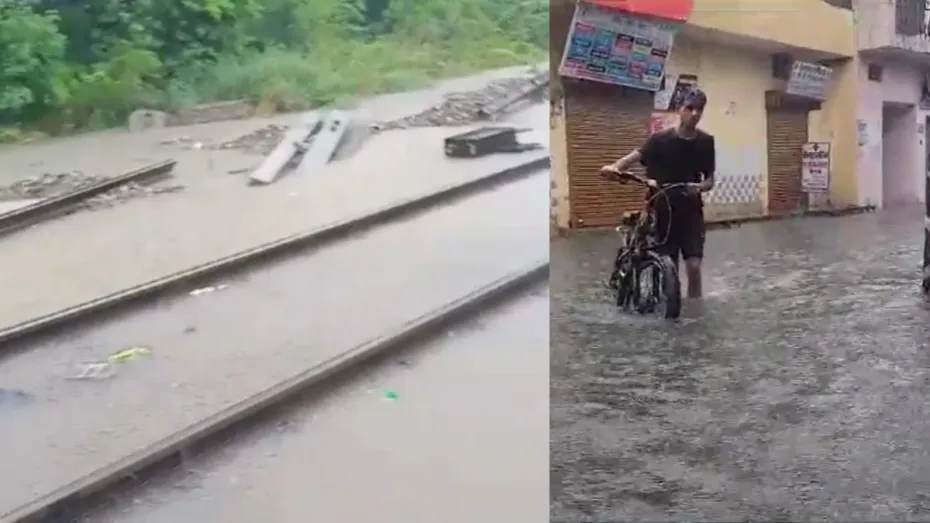 उत्तर प्रदेश के मुरादाबाद में पिछले 24 घंटे में हुई बारिश के चलते सड़कों पर पानी भर गया है। मुरादाबाद-बरेली रेल मार्ग पर पानी भरने की वजह से मुरादाबाद रेल डिविजन की 8 ट्रेनें कैंसिल कर दी गई हैं, जबकि कई ट्रेनों को पीछे ही रोक दिया गया है। इसके अलावा कई ट्रेनों का रूट डायवर्ट कर दिया गया। स्मार्ट सिटी की लिस्ट में शामिल मुरादाबाद का ड्रेनेज सिस्टम बारिश में धड़ाम हो गया है। हालत ये है कि बारिश बंद होने के बाद भी ज्यादातर इलाकों में सड़कें पानी में डूबी हैं।