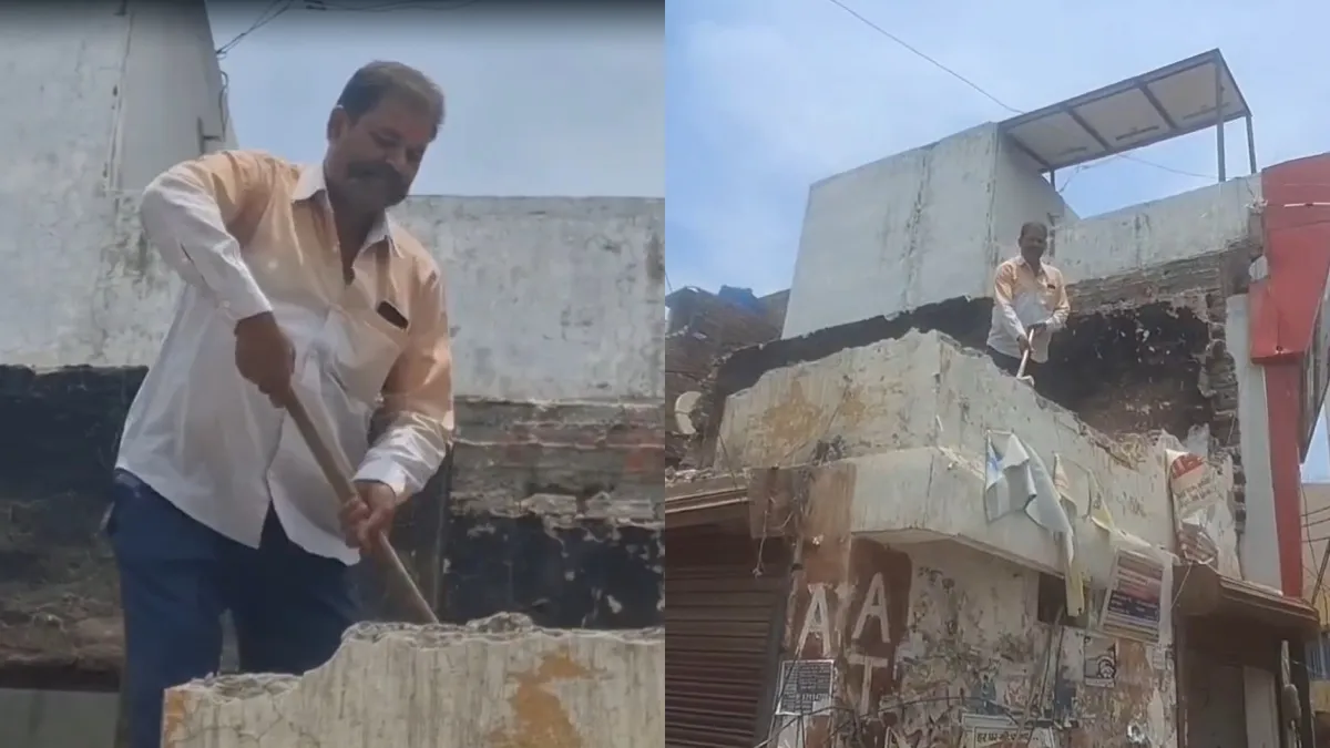 उत्तर प्रदेश के संभल में बीजेपी नेता ने खुद ही अपनी पांच दुकानों को तोड़ दिया। बीजेपी नेता का एक वीडियो भी सामने आया है, जिसमें वह खुद हथौड़ा लेकर एक दुकान तोड़ते दिखाई दे रहे हैं। संभल में इन दिनों लोक निर्माण विभाग अवैध निर्माण के खिलाफ सख्त कार्रवाई कर रहा है और सभी अवैध निर्माण नोटिफाई कर गिराए जा रहे हैं। हयात नगर-बहजोई मार्ग पर बीजेपी के जिला मंत्री जयप्रकाश गुप्ता की पांच दुकानें भी अवैध तरीके से बनी थीं। ऐसे में उन्होंने नोटिस मिलने के बाद प्रशासन की कार्रवाई से पहले ही अपनी दुकानें तोड़ दीं।