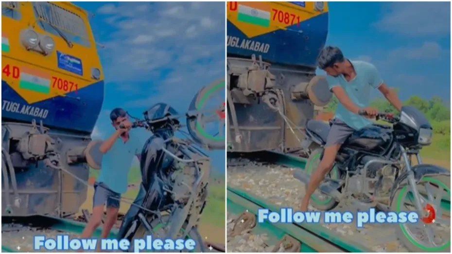 इस बीच हमारे पास एक और वीडियो आया है। इस वीडियो में देखा जा रहा है कि एक युवक रेलवे ट्रैक पर खड़ी रेल इंजन को टोचन केबल के जरिए स्प्लेंडर बाइक से खींच रहा है और उसका रील बना रहा है। सोशल मीडिया पर व्यूज पाने के लिए बनाए जा रहे इस वीडियो के जरिए न सिर्फ वह अपने जान के नुकसान पहुंचा रहा है, बल्कि रेलवे की संपत्ति को भी नुकसान पहुंचा रहा है। बता दें कि यह मामला यूपी के मुजफ्फरनगर का है, जहां ट्रेन इंजन को बाइक के जरिए खींचने की हो रही कोशिश का वीडियो सोशल मीडिया पर वायरल हो रहा है। इस वीडियो के सामने आने के बाद रेलवे हरकत में आई और सोशल मीडिया पर वायरल हो रहे बाइक नंबर के जरिए आरोपी की पहचान की गई।