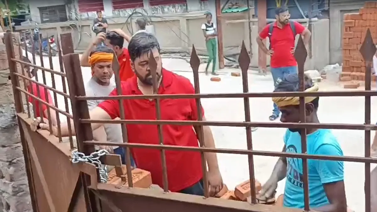 वाराणासी: सोशल मीडिया पर इन दिनों एक वीडियो तेजी से वायरल हो रहा है जो वाराणसी के भेलूपुर थाना क्षेत्र के बजरडीहा के बड़ी पटिया इलाके का बताया जा रहा है, जिसमें एक शख्स लाल टी शर्ट में कुछ मिस्त्री के साथ गेट के सामने बाउंड्री वॉल खड़ा करा रहा है। इस वीडियो के आधार पर सोशल मीडिया में कई बड़े आरोप भी लगाए जा रहे है।