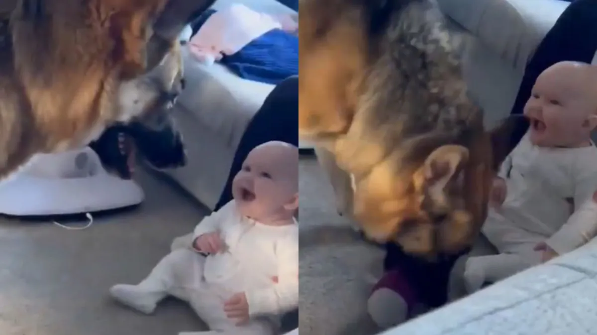 वीडियो में एक पिता अपनी नवजात बेटे को गोद में लिए बैठा दिख रहा है। जहां एक पालतू गोल्डन रिट्रीवर डॉग उस बच्चे के पास आता है और उसे प्यार से पुचकारने लगता है। जैसे ही डॉगी बच्चे को देखता हैं, वह उस पर इस कदर अपना प्यार लुटाता है जैसे वह उसका बड़ा भाई हो। डॉगी बार-बार उसे प्यार से पुचकारते हुए उसके पास आता है और फिर चला जाता है। जैसे वह उसके साथ छुपम-छुपाई खेल रहा हो। इसी बीचच डॉगी को उस बच्चे को सूंघते हुए और हल्के से चाटते हुए भी दिखता है। एक दफा तो डॉगी उस बच्चे के लिए खिलौना भी ले आता है और उसे खिलाने लगता है। यह नजारा इतना भावुक और प्यारा है कि इसे देखकर हर किसी का दिल पिघल जाए।
