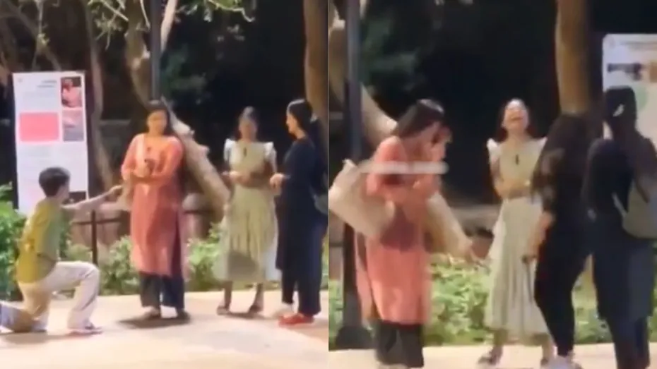अभी जो वीडियो वायरल हो रहा है उसमें नजर आता है कि किसी पार्क में एक जगह पर 4 लड़कियां खड़ी हैं और वो आपस में बात कर रही हैं। तभी एक लड़का उन्हीं में से किसी एक लड़की को इम्प्रेस करने के लिए वहां पहुंचता है और उसे फूल देता है। वो घूटने पर बैठकर फूल देता है और उसके बाद खड़ा होकर शाहरुख खान वाला पोज मारता है। इतने में ही उसकी पैंट सरक के नीचे उतर जाती है और यह देख सभी लड़कियां हंसने लगती है। वीडियो को देखकर ऐसा लगता है कि यह एक स्क्रिप्टेड वीडियो है जो अब वायरल हो रहा है।