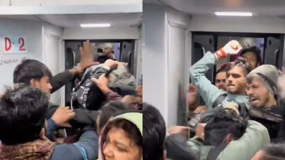 अभी जो वीडियो वायरल हो रहा है उसमें नजर आता है कि एक कोच के दरवाजे के पास कई लड़के खड़े हैं और उनमें से कुछ के बीच में लड़ाई हो रही है। वीडियो में दिख रहा है कि दो जगहों पर लड़ाई हो रही है। एक जगह 1 Vs 1 हो रहा है तो वहीं एक जगह पर एक लड़के से दो लड़के लड़ रहे हैं। कुछ देर बाद सब एक जगह पर हो जाते हैं और इनके बीच में लड़ाई चल रही होती है। वहीं यह भी दिखता है कि दो लड़कियां खुद को बचाते हुए कोच के अंदर जाने की कोशिश कर रही हैं।