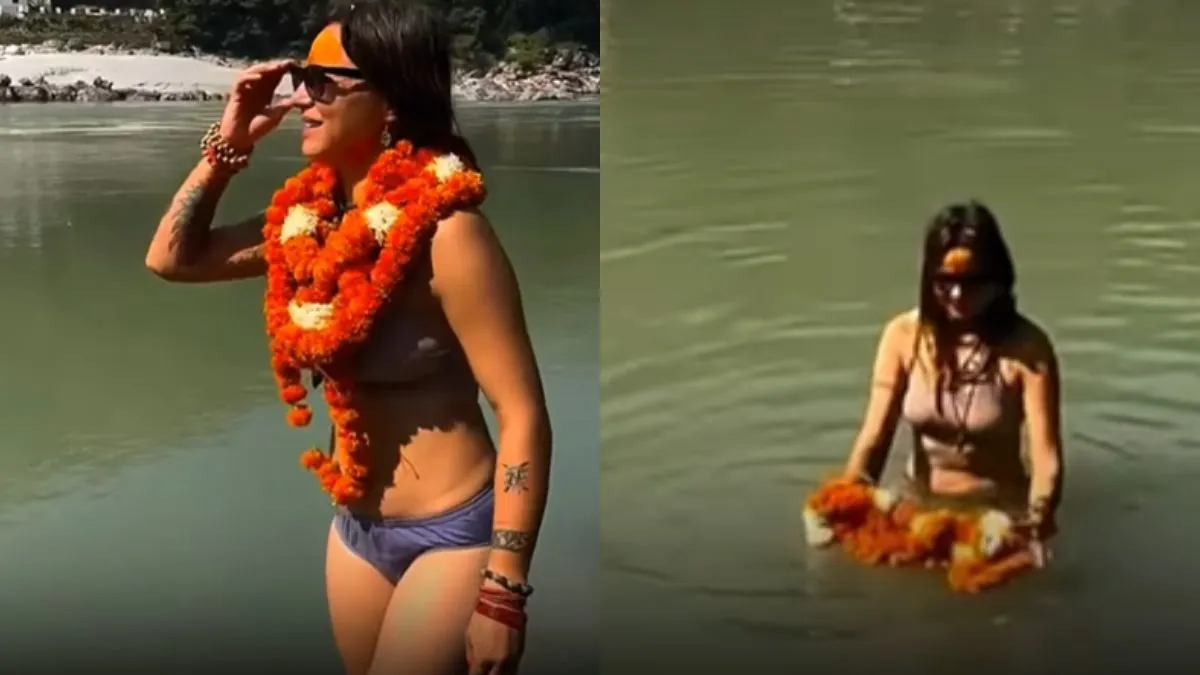 हम जिस वायरल वीडियो की बात कर रहे हैं उसमें नजर आता है कि एक विदेशी महिला बिकिनी में है। उसके गले में बहुत सारी मालाएं हैं, माथे पर चंदन लगा है और आंखों पर चश्मा है। वो पहले तो 'ॐ नमः शिवाय' और 'गंगा मैया की जय' बोलती है। इसके बाद वो गंगा नदी में उतरती है और माला उतारकर नदीं में बहा देती है। इसके बाद वो खुद पानी में डुबकी लगाती है। वो नदीं में तैरती है और कुछ देर बाद बाहर आती दिखती है। अब महिला का यह वीडियो सोशल मीडिया पर काफी वायरल हो रहा है जिसे देखने के बाद लोग भी अपना रिएक्शन दे रहे हैं।