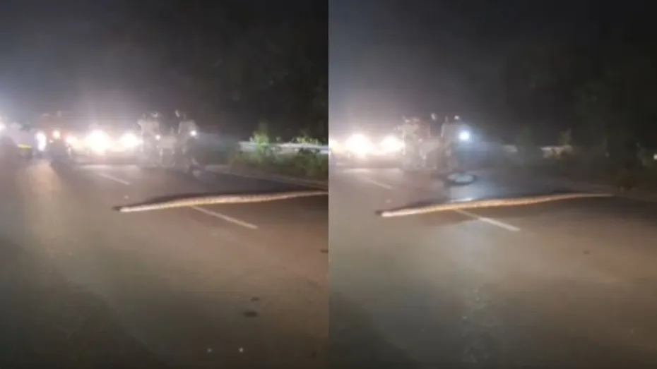 सड़क से गुजरता हुआ दिखा अजगर