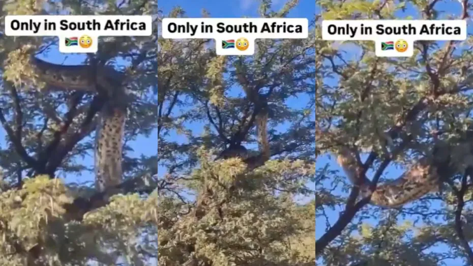 दक्षिण अफ्रीका के घने जंगलों से एक ऐसा नजारा सामने आया, जिसे देखकर हर कोई दंग रह गया। यहां एक विशालकाय अजगर को पेड़ पर चढ़ते देखा गया। यह नजारा इतना रोमांचक था कि इसका वीडियो सोशल मीडिया पर जमकर वायरल होने लगा। वीडियो को सोशल साइट एक्स पर डॉ. शीतल यादव नाम की यूजर ने शेयर किया है। जिसे अब तक 1 लाख से ज्यादा लोगों ने देखा और 1800 लोगों ने लाइक किया है।